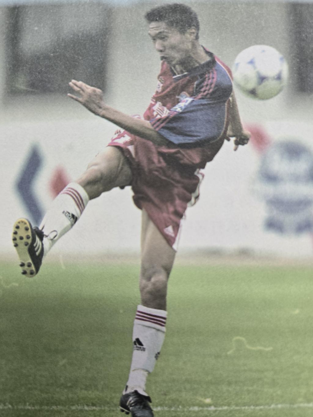 百年足球,青岛荣耀!近期,在天泰体育场外的训练场上,一位身材精炼的大咖,正在穿梭指导年轻教练冒着高温酷暑和孩子们训练,他就是现任半岛足球俱乐部青训总监,曾在职业赛场身经百战,专门负责盯防对方箭头人物的叶荣顺。